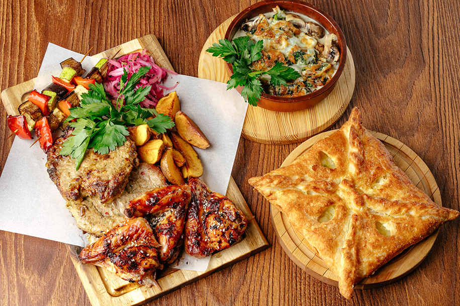- Мясо по-грузински с картофельными дольками и зеленью