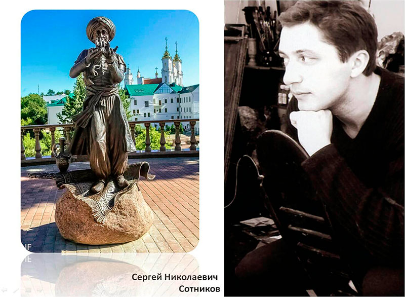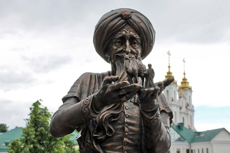 А в 2017 году в Витебске был поставлен памятник литературному герою – старику Хоттабычу. Скульптура находится рядом с Белорусским театром «Лялька» на улице Пушкина. Бронзовая статуя высотой 1,8 метра изображает сказочного джинна, держащего в ладонях человека с верблюдом. Дом, где жила его семья, находился неподалеку от места, где поставили памятник Хоттабычу, — на улице Подвинской (сейчас Толстого).