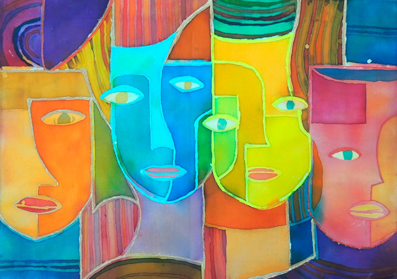Семёнова Софья, 14 лет "Маски" - ДПИ батик |