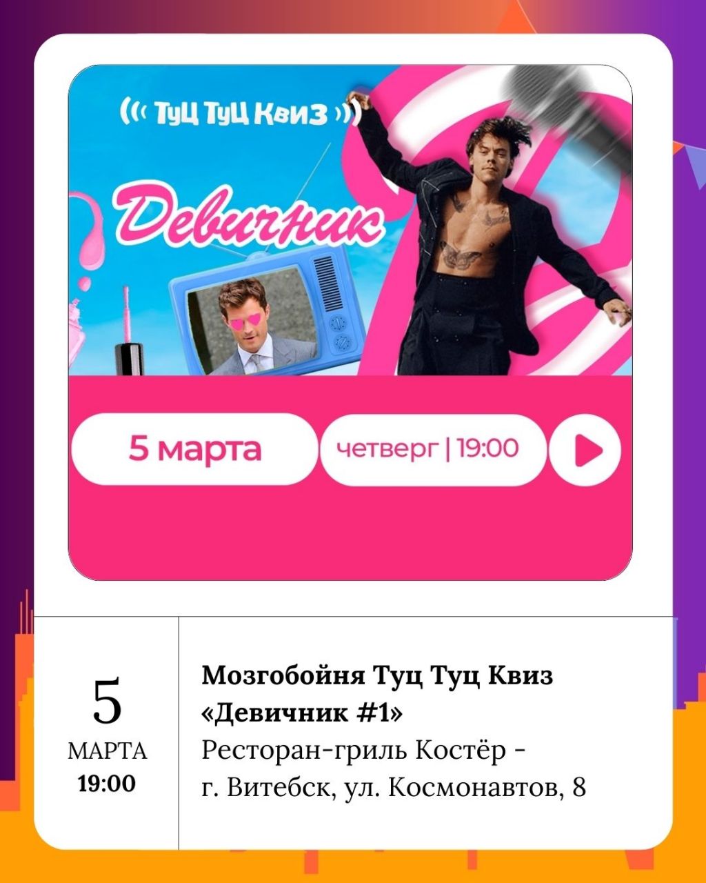 Для тех, кто любит весело провести время в компании, состоится Мозгобойня Туц Туц Квиз «Девичник #1». Отличный способ отдохнуть и посмеяться!