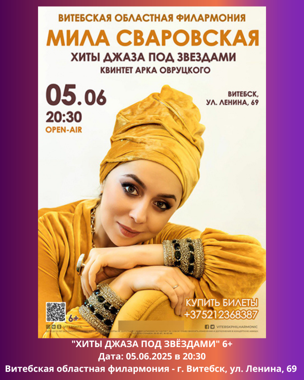 5 июня в витебской областной филармонии пройдет концерт "Хиты джаза под звёздами" 6+.