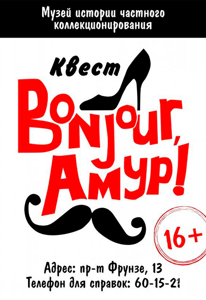 Музей истории частного коллекционирования приглашает пары пройти квест "Bonjour, Амур!". Это не только интересная и современная форма досуга, а ещё отличный (и не банальный!) подарок. Отложите все дела и отправляйтесь в необыкновенное приключение! Обещаем - будет и серьезно, и весело, и познавательно, и увлекательно!