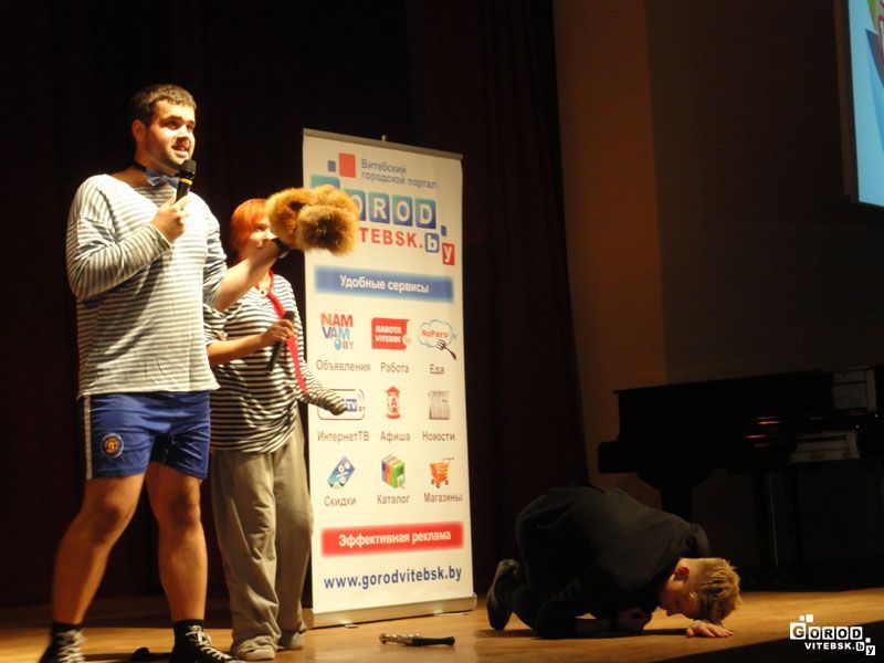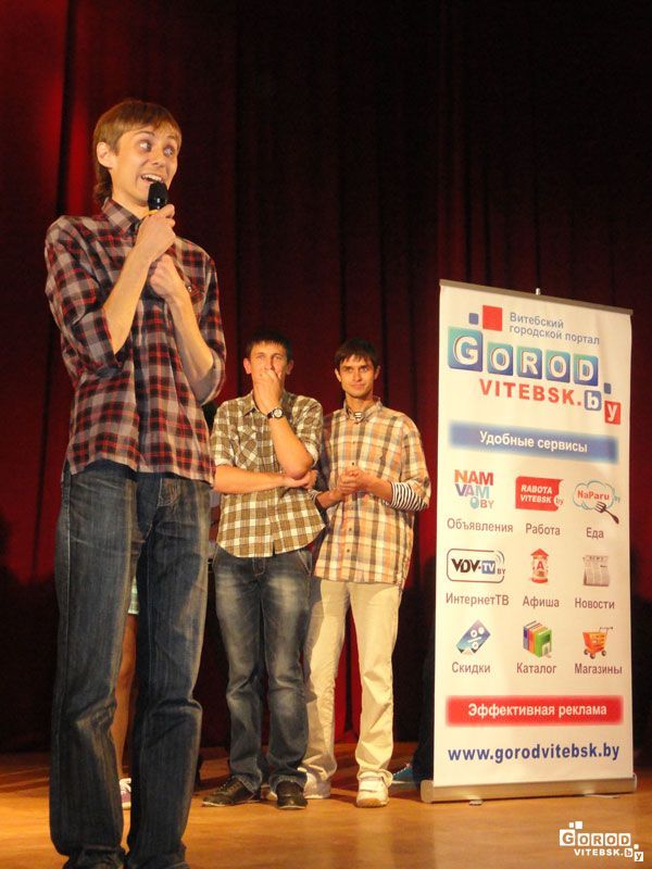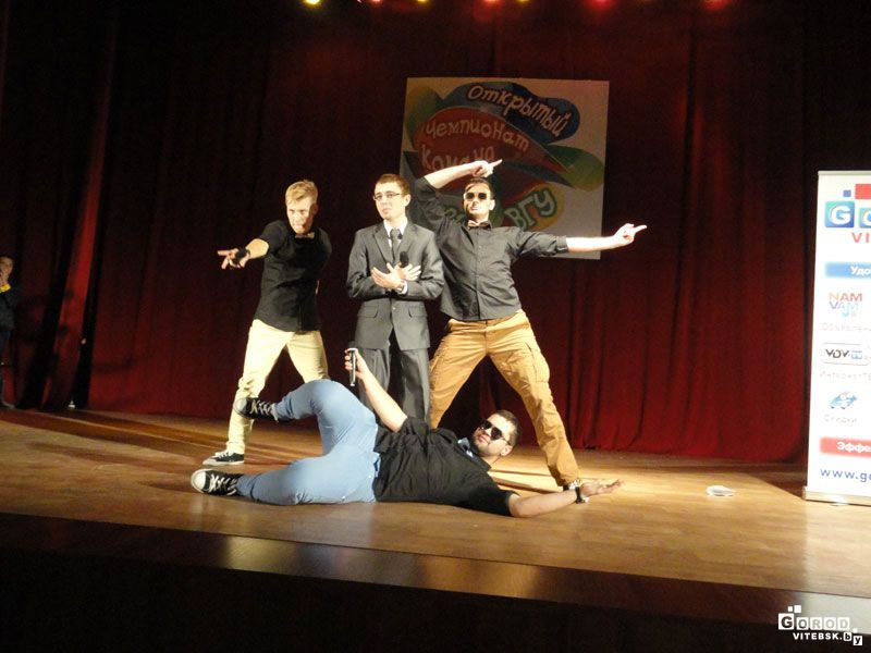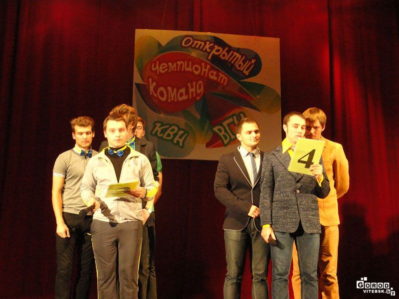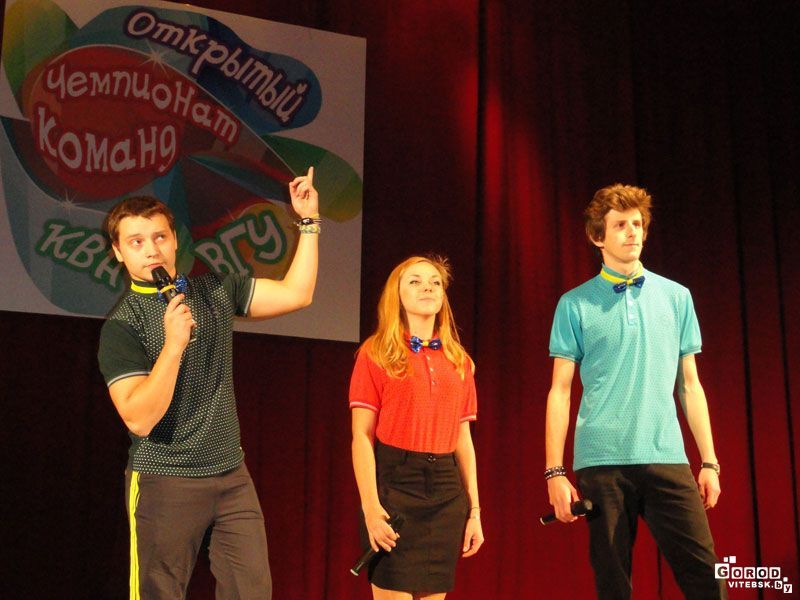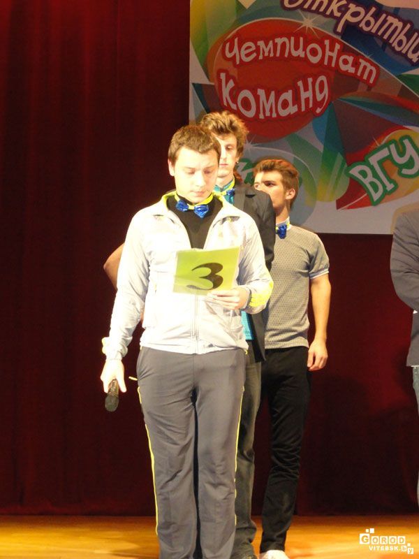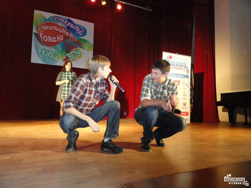 Прошел первый день 1\2 финала Открытого Чемпионата команд КВН ВГУ (фоторепортаж) В игре приняли участие следующие команды: «Дети асфальта» (исторический факультет ВГУ) «Барсучий рай» (сборная университета ВГУ) «Немного лишнего» (ПГУ) «Всё ровно» (ВГМУ) Смотреть Афишу Витебска >>>