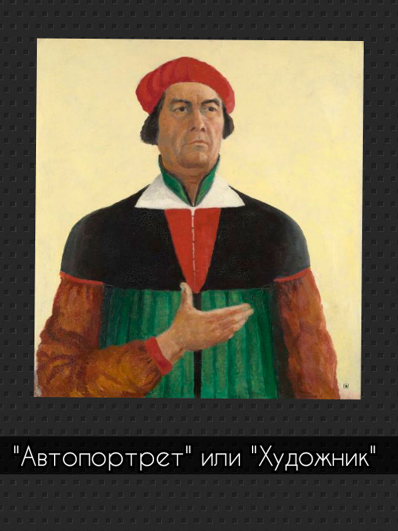 Картина "Автопортрет. (Художник)" написана 1933 г. маслом на холсте. В правом нижнем углу картины виден маленький чёрный квадрат, которым Малевич в виде «личной печати» неоднократно подписывал свои поздние работы.