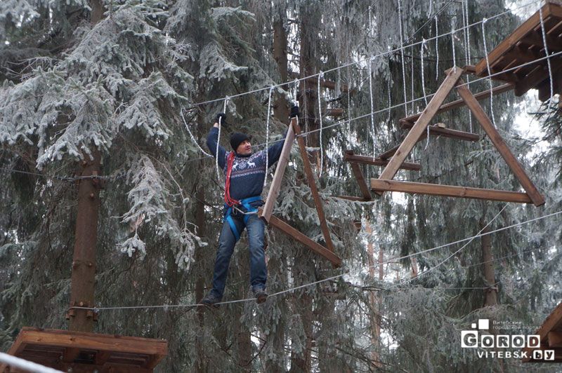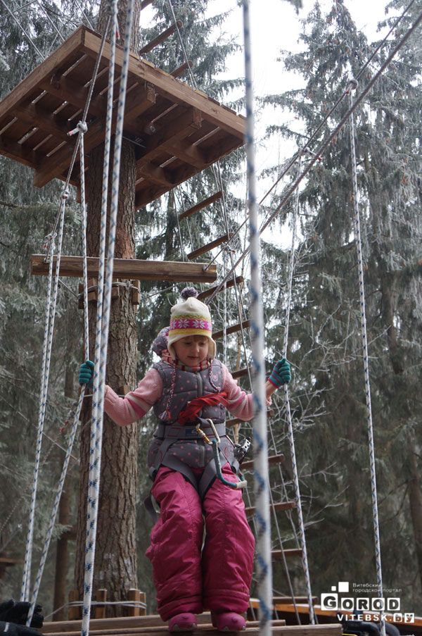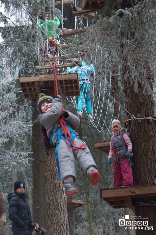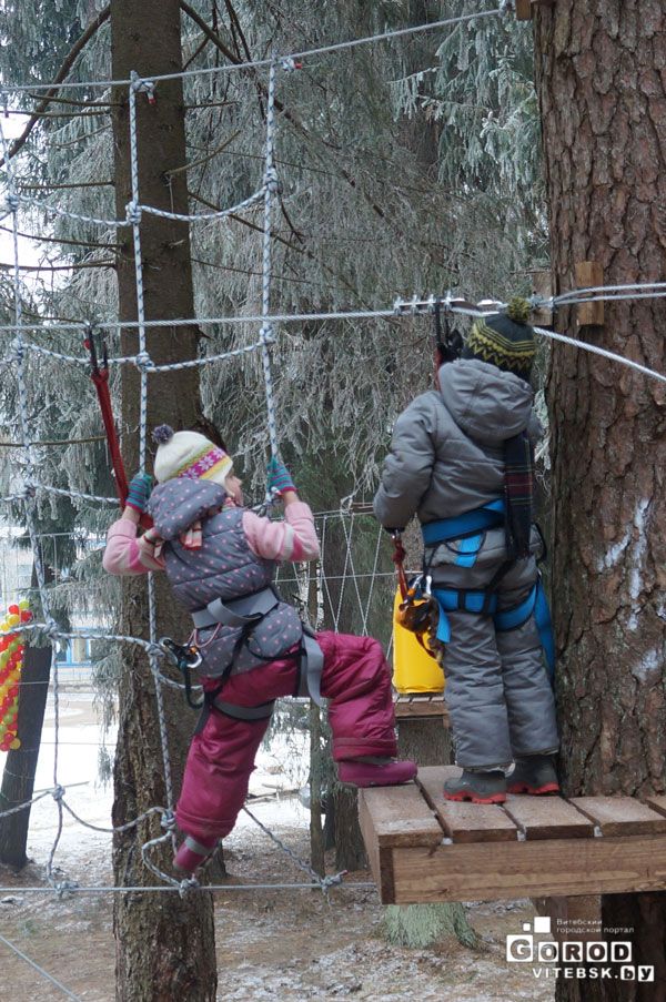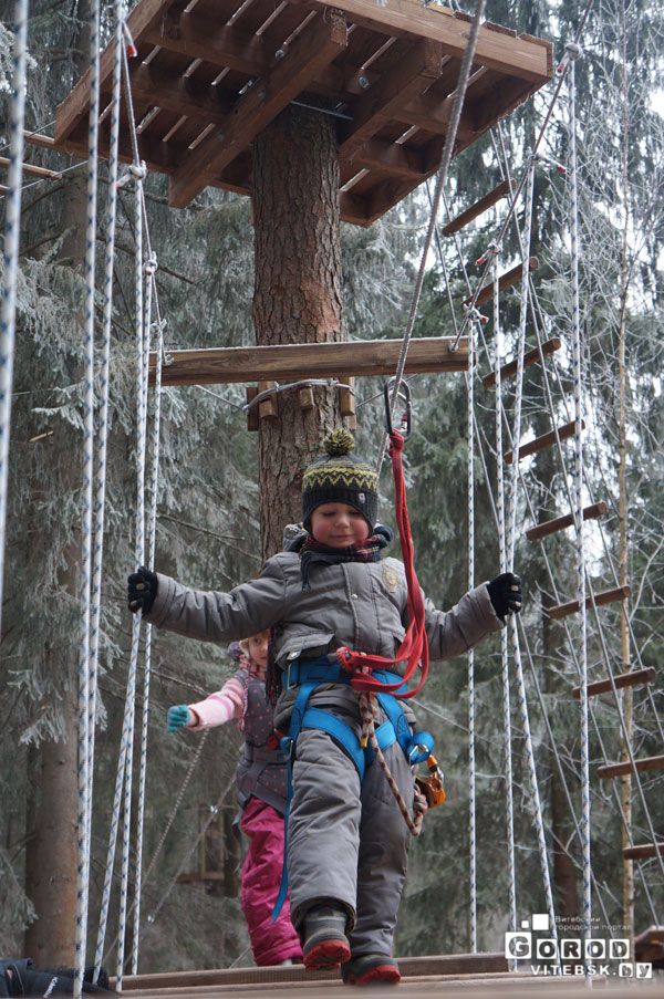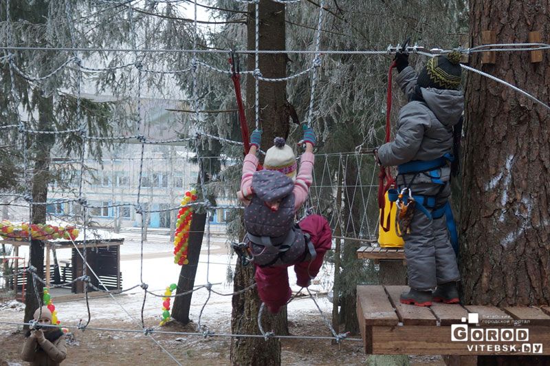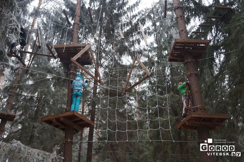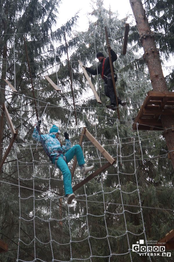 И дети и взрослые могут попробовать новое для Витебска развлечение. Опытные инструкторы объяснят Вам, как правильно пройти путь. Городок имеет непрерывную систему страховки. Вы пристегиваетесь в начале этапа и отстегнуться можете только по окончании пути.