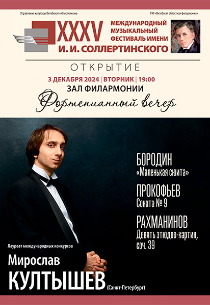 Открытие XXXV Международного музыкального фестиваля имени И.И. Соллертинского 6+ состоится уже завтра, 3 декабря, в 19.00 в Витебской областной филармонии.