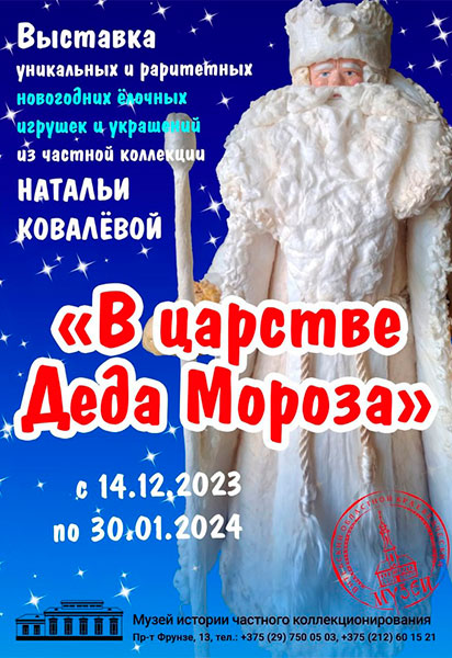 В музее истории частного коллекционирования продолжает работу выставка уникальных и раритетных новогодних ёлочных игрушек и Дедов Морозов из частного собрания Натальи Ковалёвой «В царстве Деда Мороза».