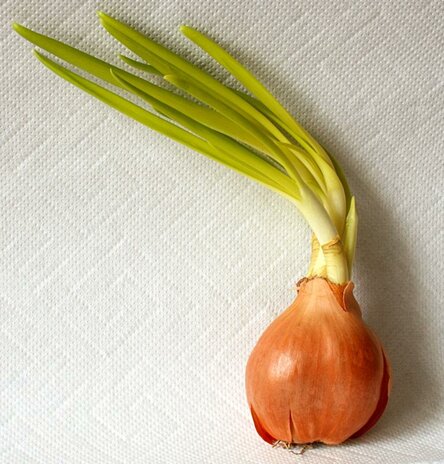 Ростки появятся в виде маленьких петелек. С этого момента лучок надо начать досвечивать фитолампой, чтобы его световой день был не менее 12 часов. Подойдет и лампа дневного света, но эффективность ее гораздо ниже.