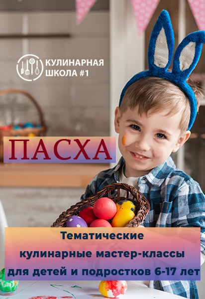 Тематические кулинарные мастер-классы: "Пасха" пройдут сегодня в 18.30 в Кулинарной школе №1 для детей от 6 лет.