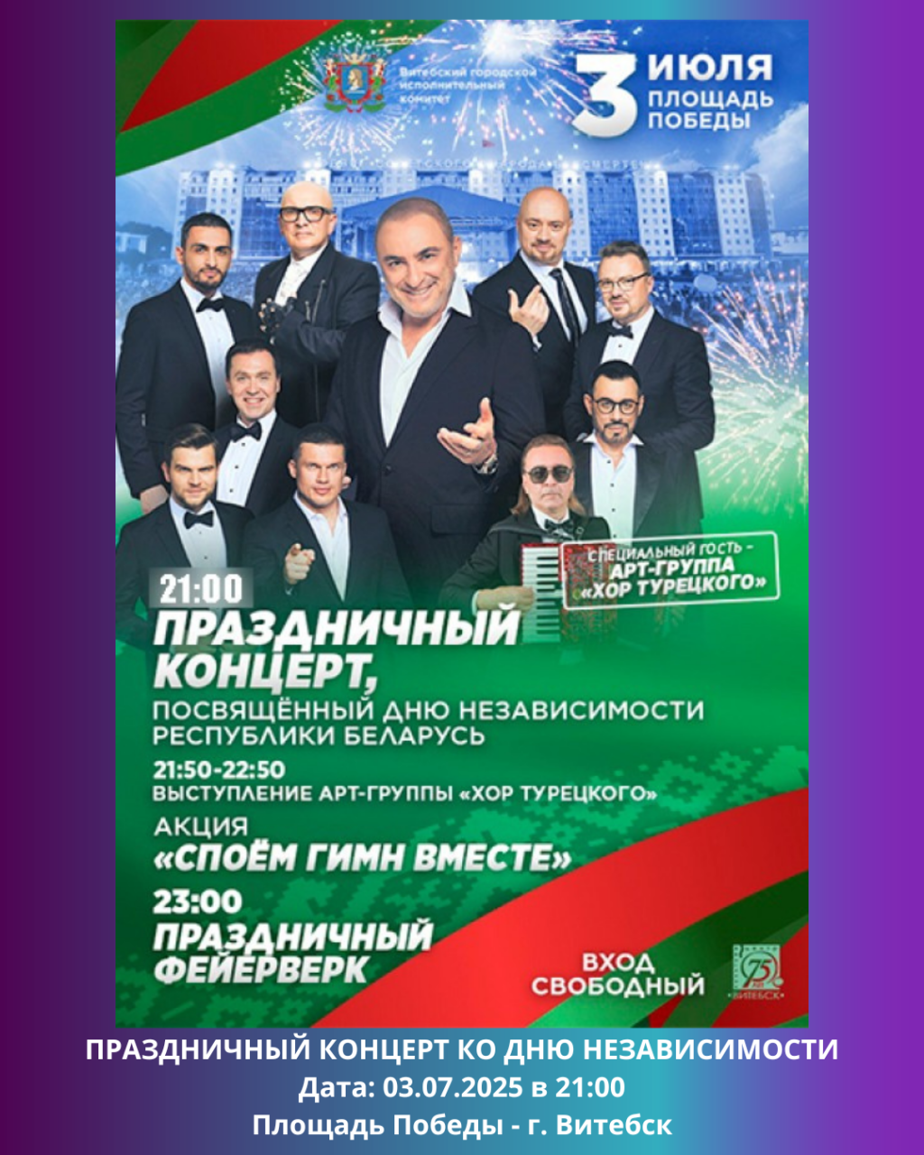 3 июля Витебск вместе со всей страной отметит День Независимости Республики Беларусь и 81-ю годовщину освобождения Республики Беларусь от немецко-фашистских захватчиков в Великой Отечественной войне.