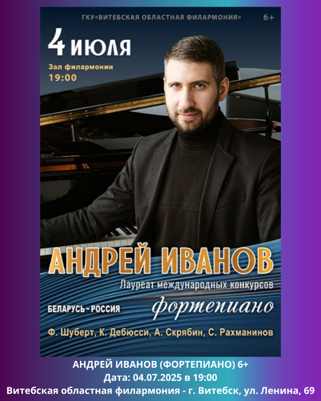 Андрей Иванов (Фортепиано) 6+ выступит с концертом в пятницу в витебской областной филармонии.