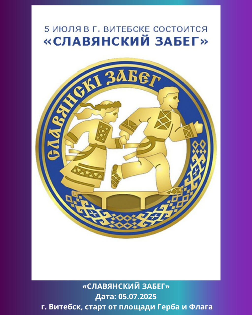 Приветствуем всех любителей бега! 5 июля в Витебске состоится «Славянский забег». #Славянский_забег – это праздник спорта, который объединяет людей со всей Беларуси и ближайшего зарубежья.