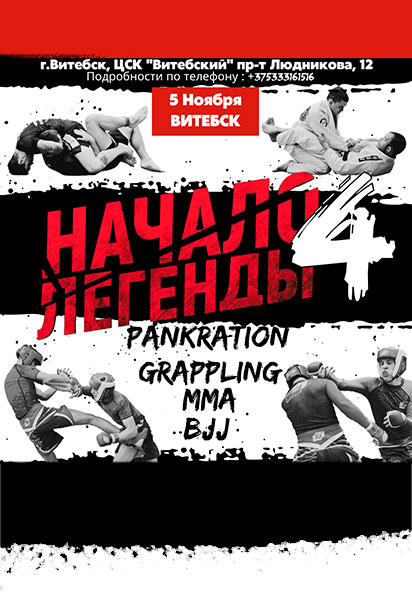 Для любителей схваток и поединков в Витебском центральном спортивном комплексе состоится Открытый турнир по ММА, Панкратиону и Бразильскому ДЖИУ-ДЖИТСУ (GI/NO-GI) "НАЧАЛО ЛЕГЕНДЫ-4" 5 ноября.
