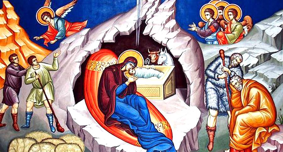 Из Евангельской истории известно, что Богородица накануне рождения Сына пришла в Вифлеем. Вместе с супругом своим Иосифом она участвовала в переписи граждан. Вифлеем – город маленький, в гостинице мест для всех не хватало. Поэтому Мария и Иосиф остановились на ночлег в пещере. Таких мест в тех краях было много – туда пастухи загоняли на ночь скот. В ту же ночь и родился Христос. Младенца положили в ясли – кормушку для скота. Первыми воплотившемуся Богу поклонились пастухи.