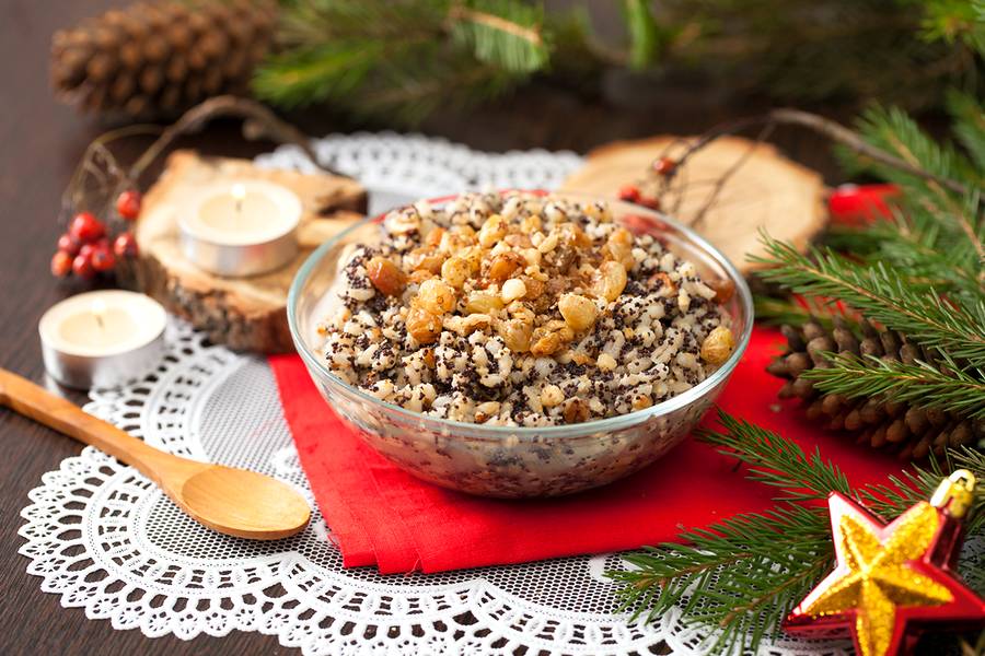 Кутья – блюдо из проваренных зерен, чаще пшеничных, с медом и орехами. Только с XVI века в него стали добавлять мак, а еще позднее – изюм. Современные хозяйки вместо меда добавляют халву или сахар. От этого вкус кутьи улучшается, но несколько теряется ее символическое значение, так как мед – самый чистый на земле продукт. А Богу, как известно, отдается лучшее.