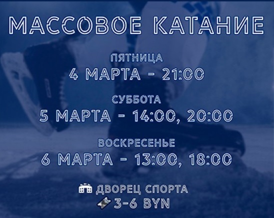 Массовые катания в Ледовом дворце пройдут по следующему расписанию: