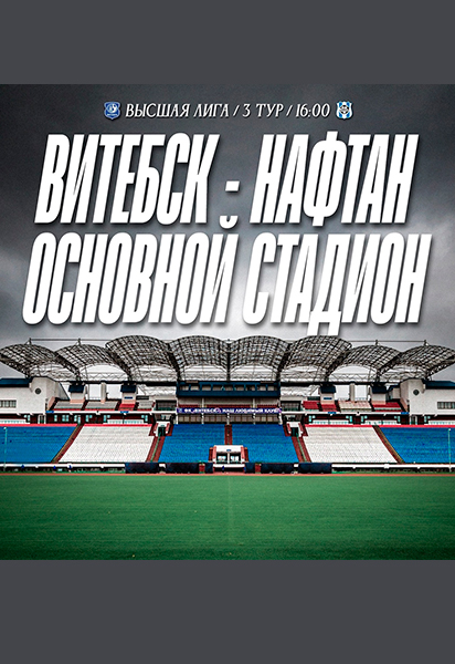 Витебск сыграет с Нафтаном на основном стадионе в 16.00. Болеем за наших! Вход свободный.