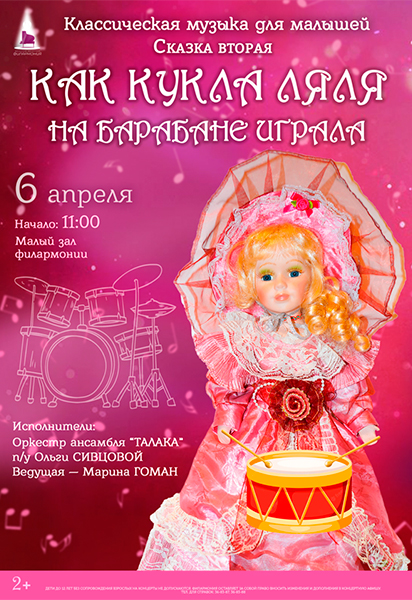 Или в филармонии послушаем «КАК КУКЛА ЛЯЛЯ НА БАРАБАНЕ ИГРАЛА» 2+.