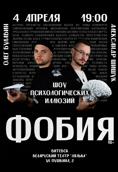 Белорусский театр Лялька приглашает на Шоу психологических иллюзий “Фобия” 16+. Также сегодня в 19.00.
