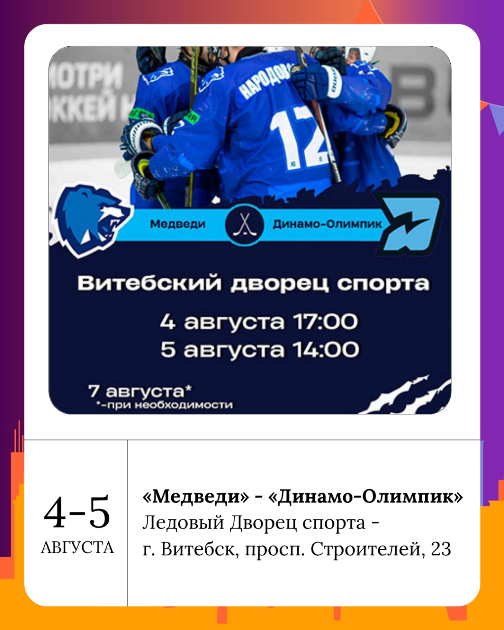 В Ледовом Дворце спорта сегодня и завтра «Медведи» сразятся с «Динамо-Олимпик» в рамках кубка Цыплакова. Болеем за наших!