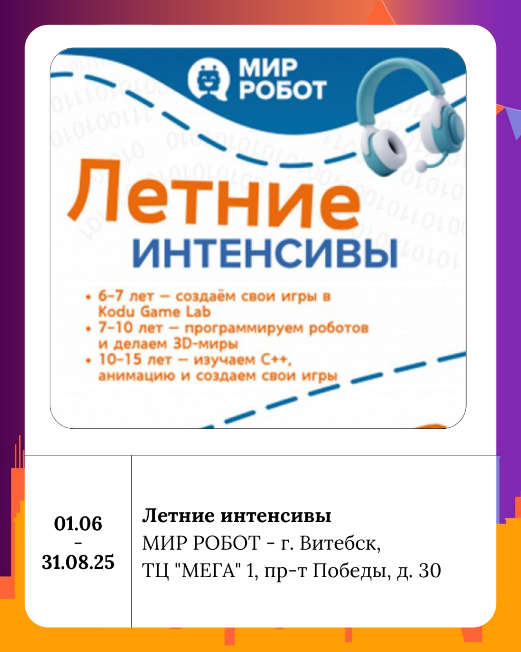 В МИР РОБОТ – школе робототехники, программирования и 3D-моделирования продолжаются летние интенсивы. Не забудьте записаться!