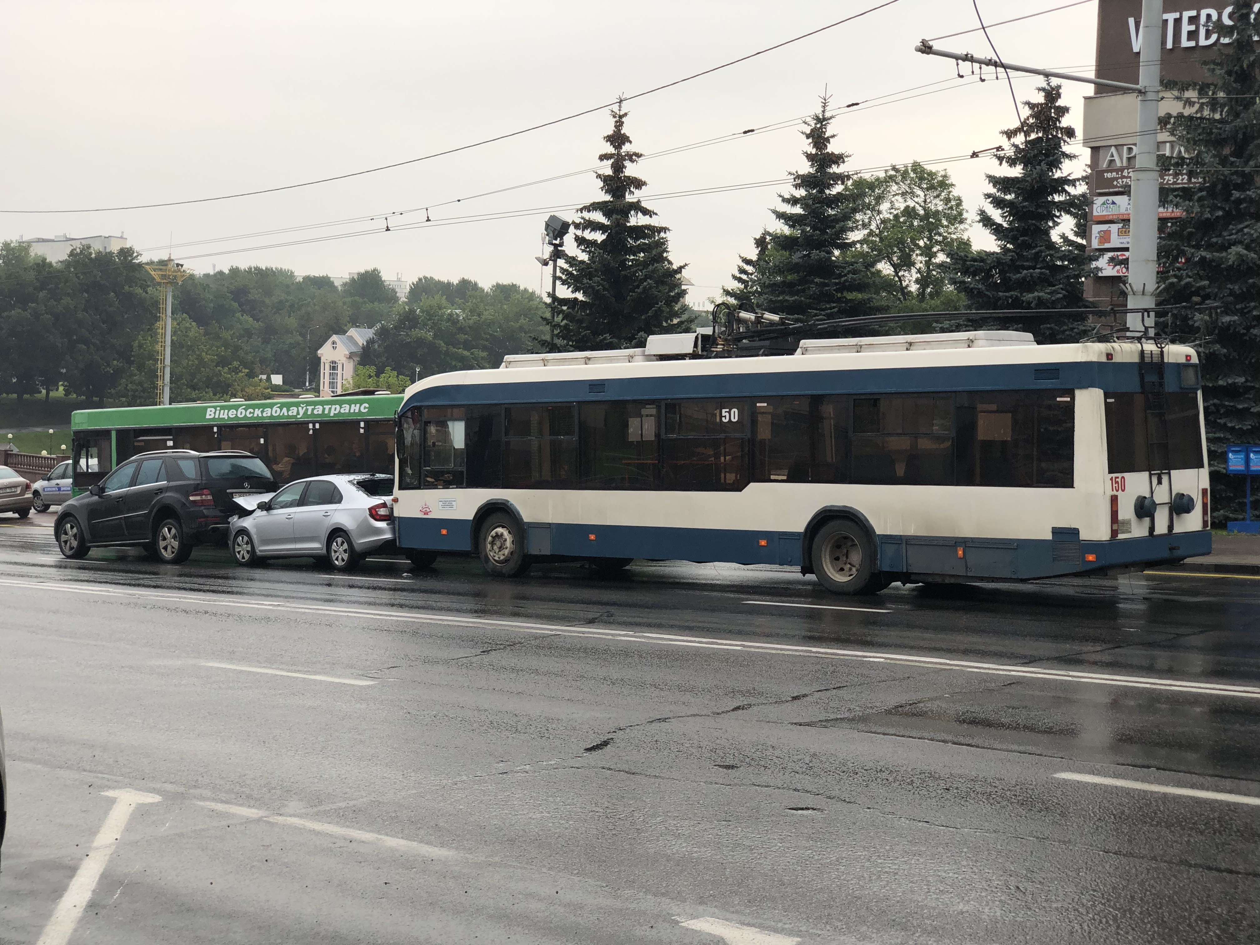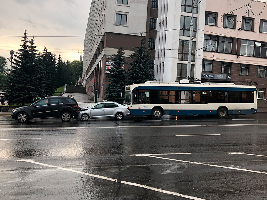 Троллейбус, легковушка и внедорожник попали в ДТП «гармошкой» в центре Витебска