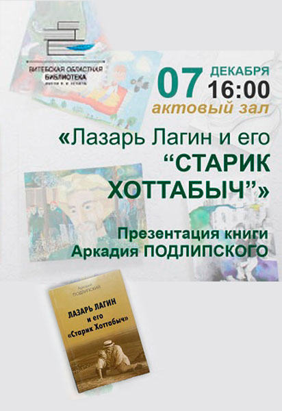 Презентация книги «Лазарь Лагин и его “Старик Хоттабыч“» журналиста и краеведа Аркадия Подлипского состоится 7 декабря в 16:00 в областной библиотеке. Это первая и самая полная биография Лазаря Лагина, 120-летие со дня рождения которого исполняется в декабре 2023 года.