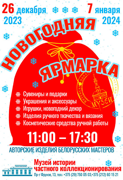 Новогодняя выставка-ярмарка авторских изделий работает в том же музее. Огромный выбор сувениров для родных и близких, выполненных мастерами ручной работы для вас с любовью можно приобрести по 7 января года с 11:00 до 17:30.