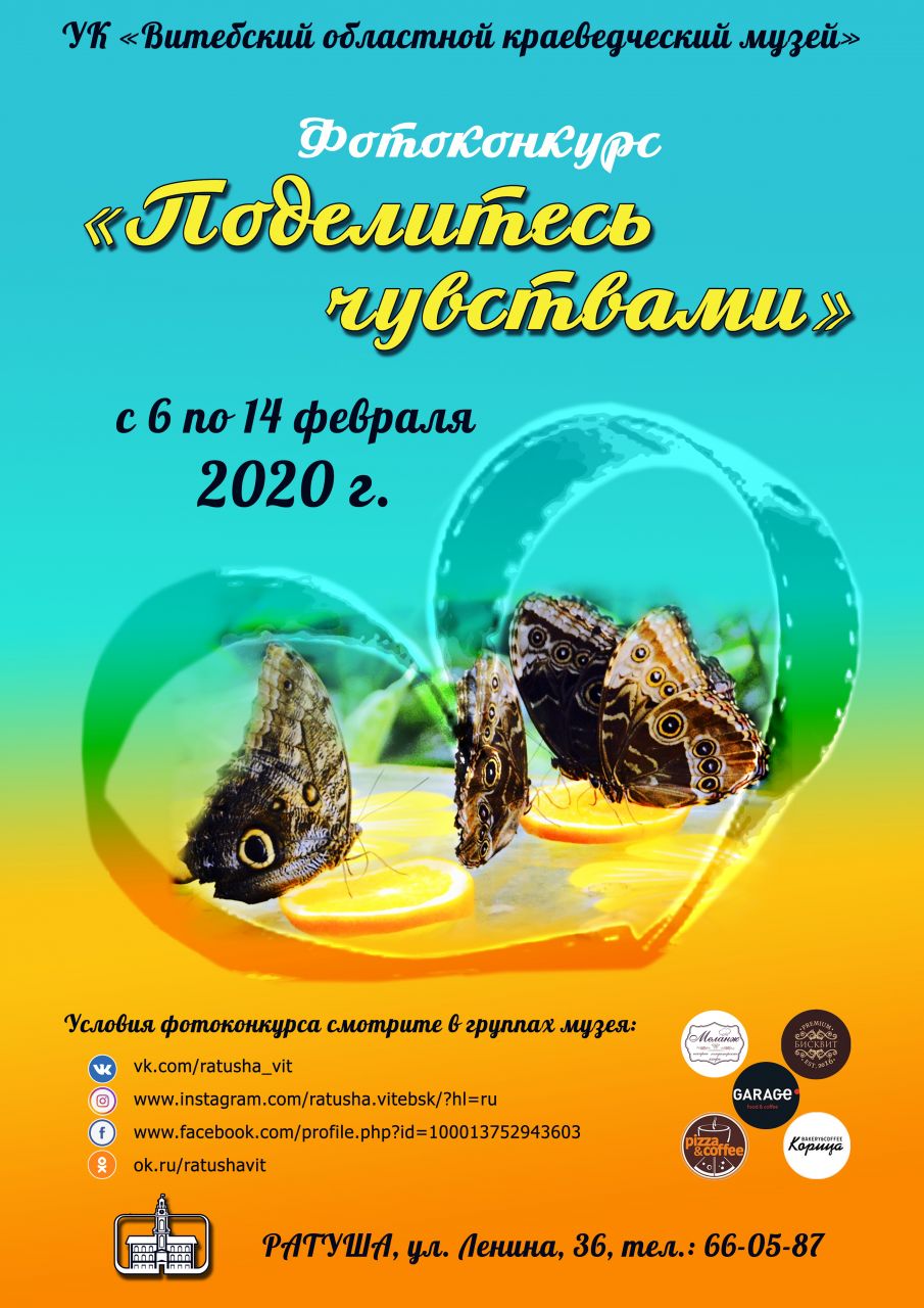 - Подведение итогов фотоконкурса «Поделитесь чувствами» состоится 14 февраля в 12.00. на странице музея в ВК https://vk.com/ratusha_vit