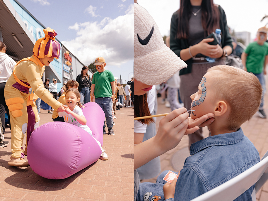 Гостям праздника предлагали бесплатно сделать аквагрим или переводное тату. С помощью опытных мастеров они перевоплощались в героев сказки, бабочек или супергероев.