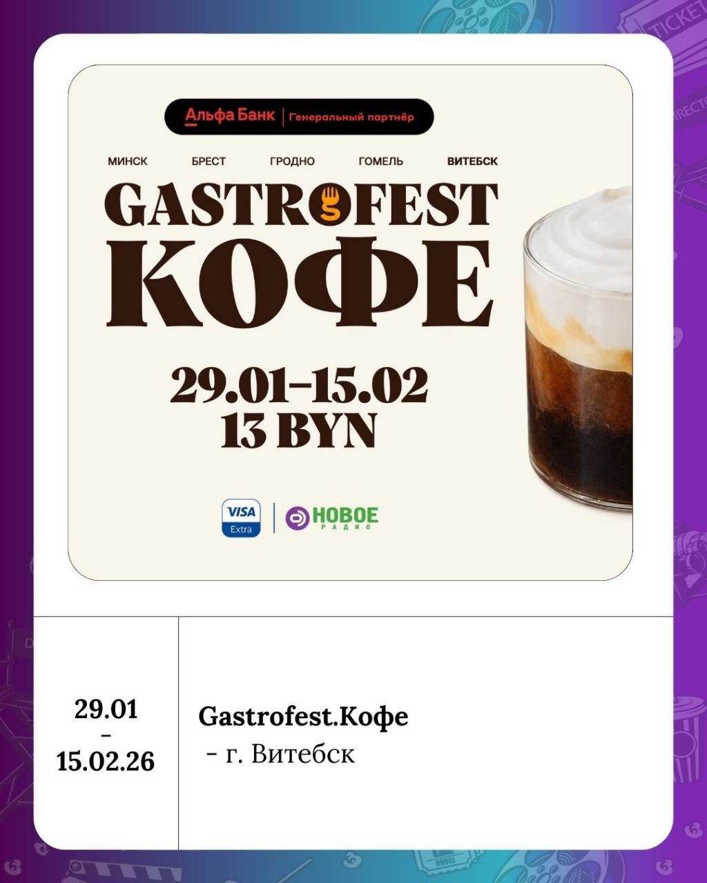 Фестиваль Gastrofest.Кофе продолжается, и это отличный шанс устроить себе маленькое гастрономическое приключение. Кофейни города предлагают дегустационные сеты из кофе и десерта, а стоимость фестивального предложения — всего 13 рублей. Идеальный повод встретиться с друзьями, согреться и попробовать что‑то новое.