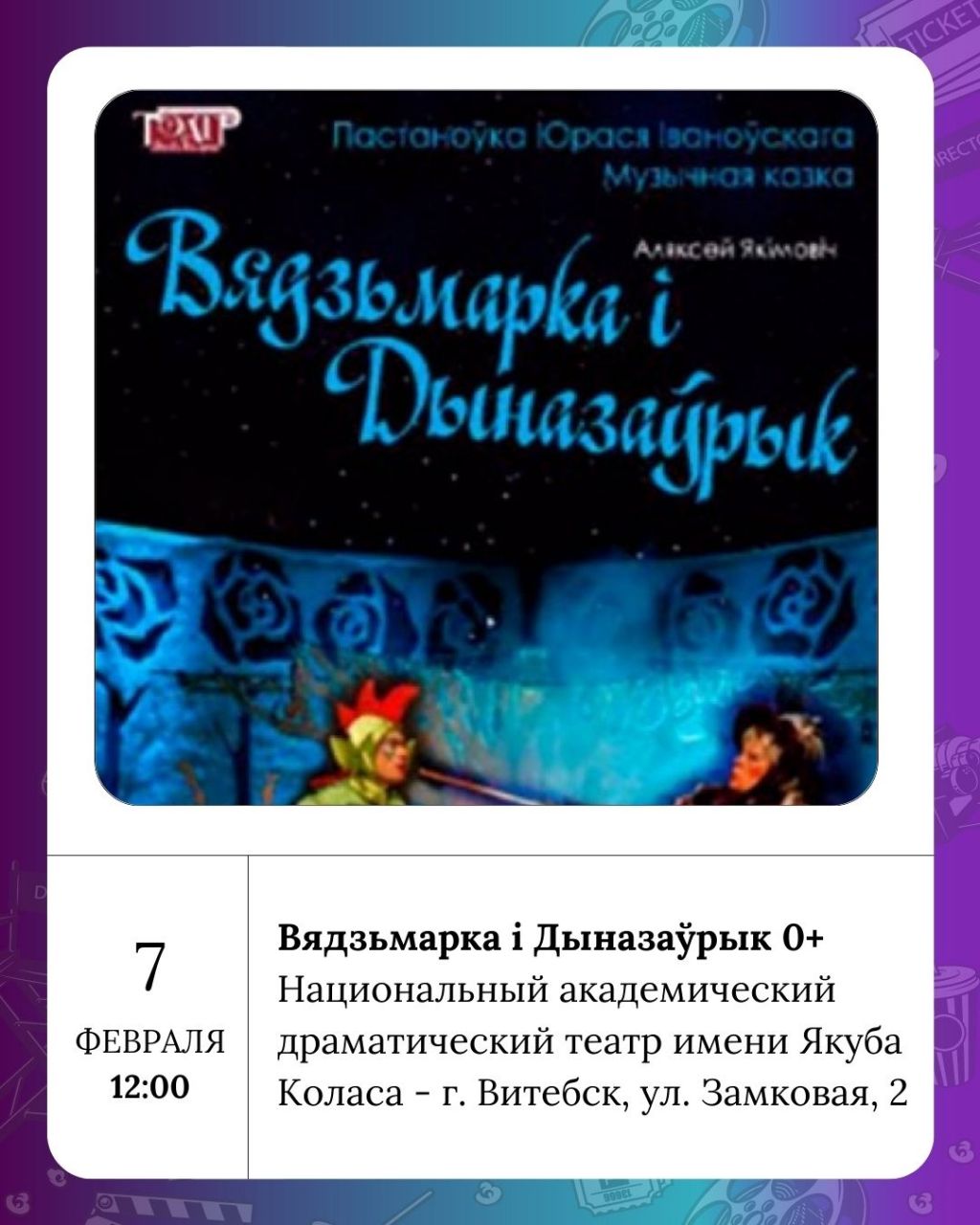 Самых маленьких своих поклонников артисты театра приглашают на сказку Вядзьмарка і Дыназаўрык 0+.