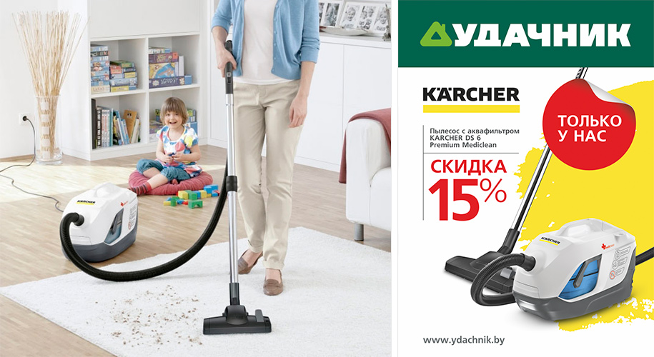- Пылесос с аквафильтром Karcher DS 6 Premium Mediclean Акционная цена - 653 BYN. Только в магазине «Удачник»