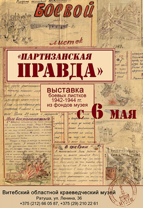 В Витебском областном краеведческом музее открылась выставка рукописных партизанских газет «Партизанская правда» из фондового собрания музея. Рукописные партизанские газеты и боевые листки - уникальное явление в истории и культуре Беларуси периода Великой Отечественной войны. Они создавались во многих партизанских отрядах, бригадах и являлись своеобразной энциклопедией партизанской жизни. Каждая рукописная газета, боевой листок издавались в единственном экземпляре и рассказывали о жизни конкретного партизанского формирования: о проведении боевых операций, о деятельности отдельных бойцов, о внутреннем распорядке жизни в отряде или взводе и т.п. Заметки, стихи, анекдоты, рисунки, шаржи, карикатуры, созданные в перерывах между боевыми операциями, передают мысли и чувства человека на войне, демонстрируют боевой дух партизан и веру в победу. В собрании музея хранится большая коллекция рукописных партизанских изданий - более 350 экземпляров. На выставке будет представлено 58 газет и боевых листков, созданных в 1942-1944 гг. в разных партизанских формированиях, действовавших на территории Витебской области. Каждое такое издание - свидетель трагических и героических событий Великой Отечественной войны.