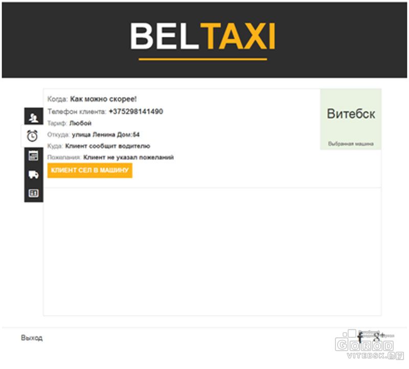 Как только клиент делает заказ, у свободного водителя сразу выскакивает сообщение о поступившем заказе и о местонахождении человека, который вызвал машину.