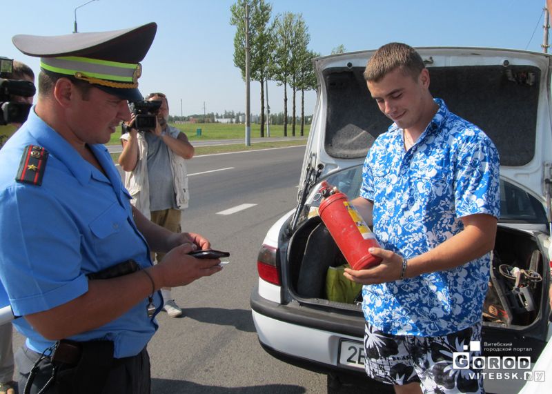 Сегодня в Витебске МЧС и ГАИ провели акцию «Безопасный автомобиль», в ходе которой проверяли наличие и исправность огнетушителей в легковых автомобилях.
