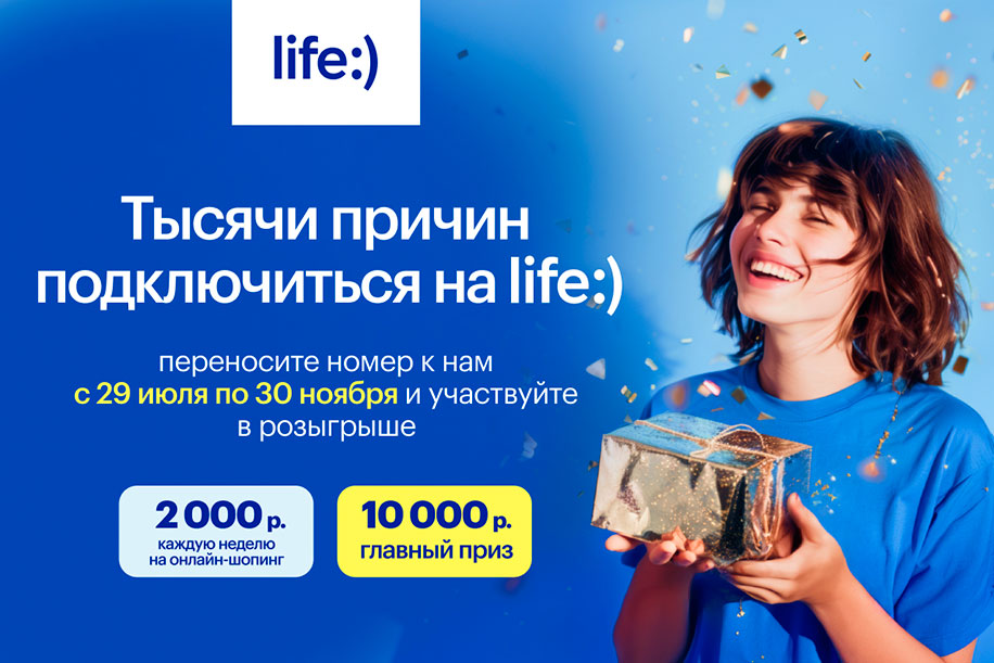 В life:) стартовала рекламная игра «Тысячи причин подключиться на life:)». Каждую неделю мобильный оператор разыгрывает 2 000 BYN на шоппинг в интернет-магазине и дарит шанс побороться за главный приз – 10 000 BYN.