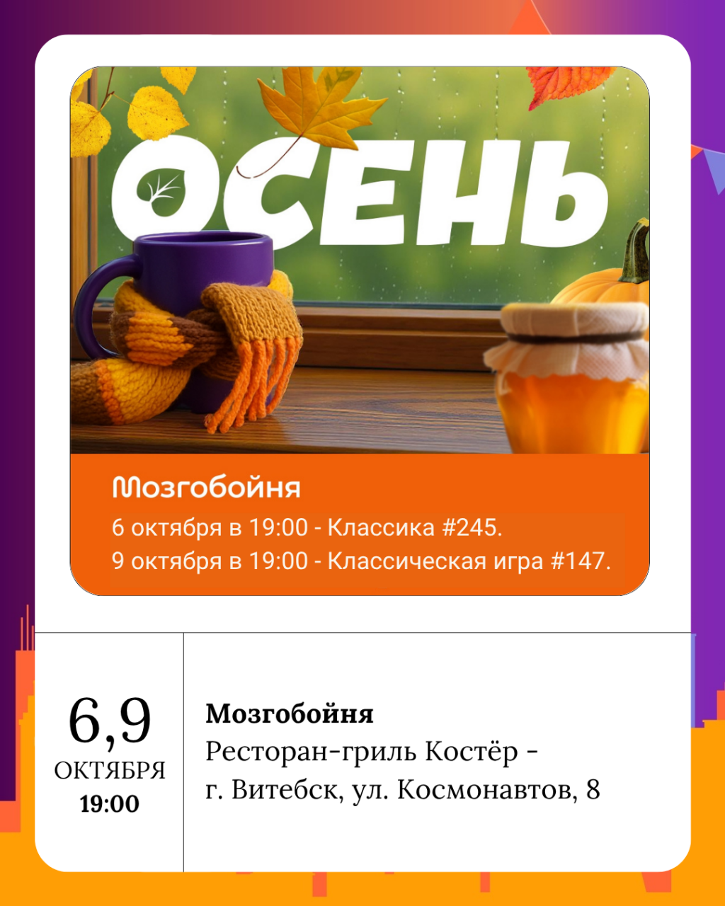 А для тех, кто любит интеллектуальные баталии, в понедельник сыграем в Мозгобойню. Там сегодня Классика #245, а в четверг - Классическая игра #147.