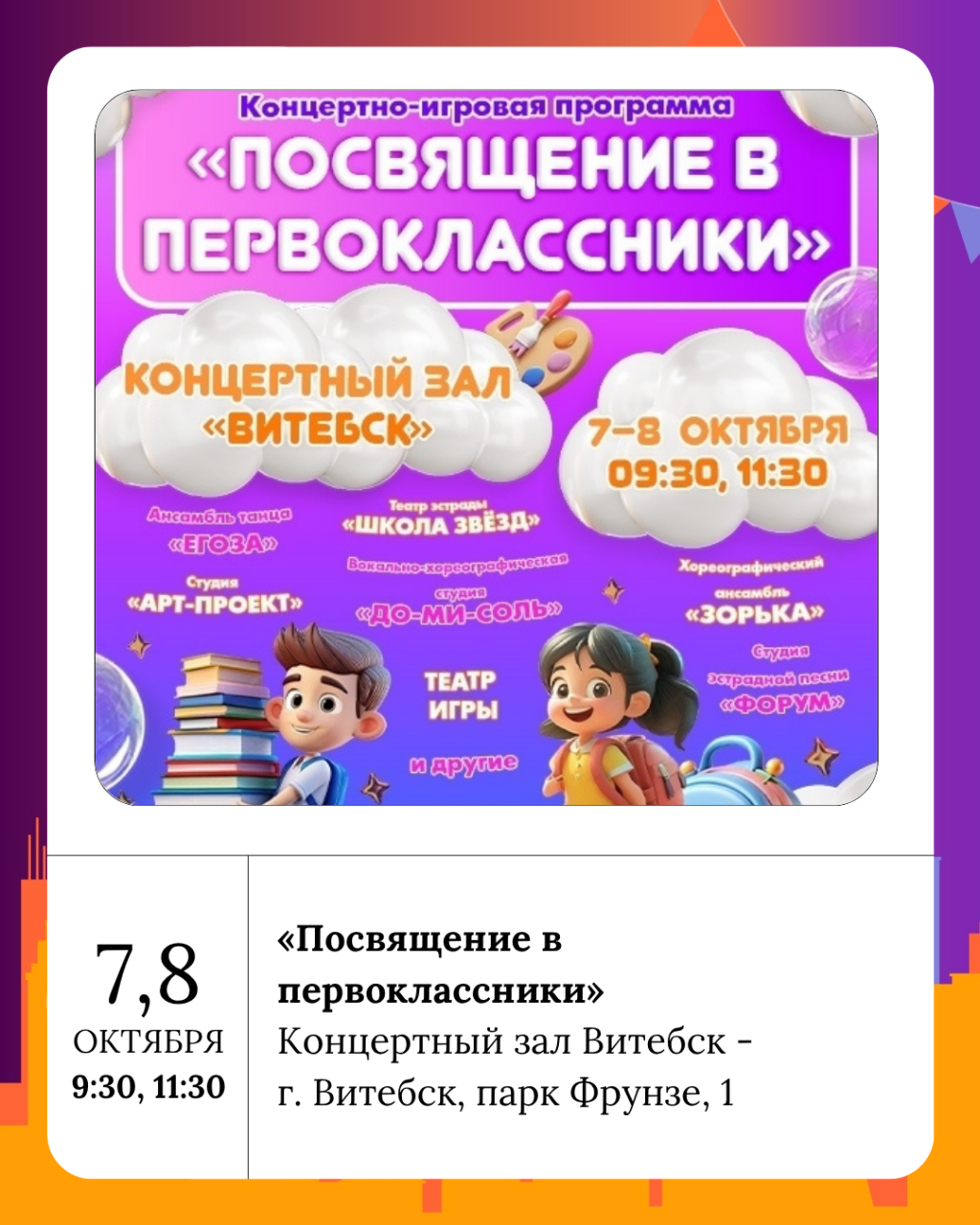 «Посвящение в первоклассники» пройдет в КЗ Витебск 7 и 8 октября, где каждый школьник получит свой особый «билет» в удивительный мир знаний, открытий и новых впечатлений!