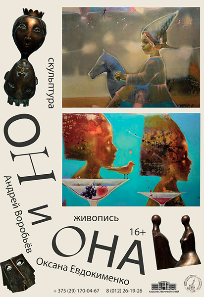 В художественном музее Витебска открылась выставка Андрея Воробьева и Оксаны Евдокименко "ОН и ОНА" 16+. Андрей Воробьев работает в монументальной и станковой скульптуре. В творчестве преобладают философские размышления на тему человеческого бытия, неповторимости, хрупкости и красоты человеческой жизни, тема любви. Оксана Евдокименко работает в технике масляной живописи. Красота и чувственность, ранимость и беззащитность женщины долгие годы были главной темой творчества художницы.