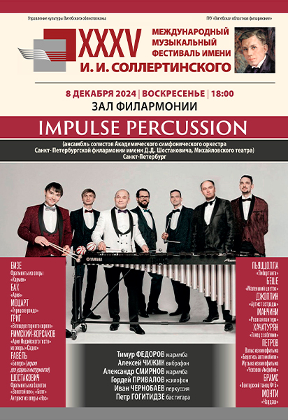 Ансамбль ударных инструментов «Impulse Percussion» (Россия) 6+ сыграет для вас в воскресенье в 18.00.