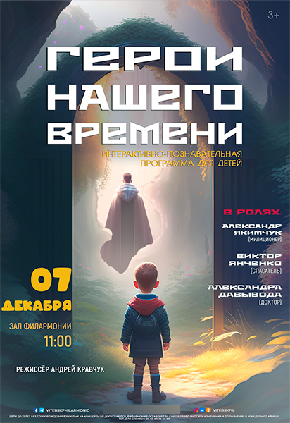 В витебской областной филармонии состоится интерактивное представление «ГЕРОИ НАШЕГО ВРЕМЕНИ» 3+, на котором детям в занимательной форме расскажут, как нужно вести себя на дороге, что делать, если ты оказался в пожаре, как справиться с плохим самочувствием, а также проведут зарядку-ускорялочку, споют и станцуют с ними. Программа подготовлена при содействии Витебского областного управления МЧС и Управления внутренних дел Витебского облисполкома.
