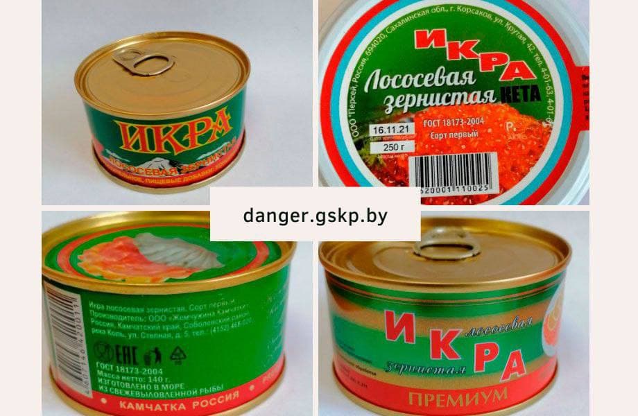 – Когда в Орше на ярмарке мы попросили показать документы, подтверждающие безопасность реализуемой икры, торговый павильон… закрылся, – продолжает Оксана Мурашкевич. – На всех наименованиях проверенной продукции отсутствовали унифицированные контрольные знаки, которые на ней должны быть в обязательном порядке. В состав лососевой зернистой икры кета от ООО «Персей», согласно маркировке, входила пищевая добавка «Е 224», использование которой в производстве данного вида продукции не предусмотрено требованиями технических регламентов Таможенного союза.