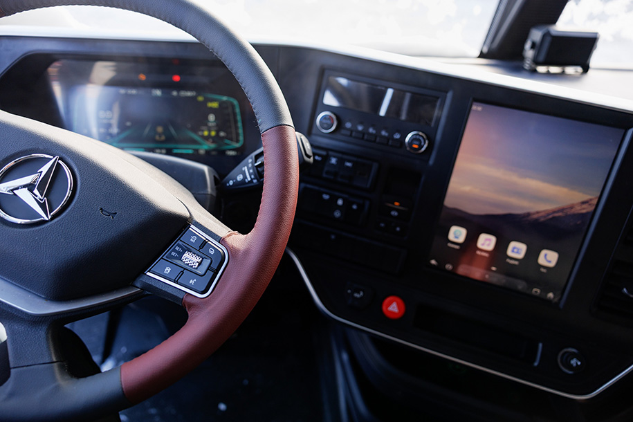 Автомобили адаптированы к суровым зимам: обладают кабиной с двойным утеплением, баком и фильтрами с подогревом впускного тракта. Для водителя – сиденье с массажем, подогреваемый руль и камера 360 с видеорегистратором. В тягачах используются комплектующие европейских брендов, таких как Knorr-Bremse и Bosch.