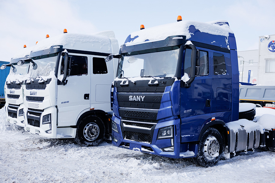 В Минск приехала крупная партия седельных тягачей SANY и колесной формулой 4х2 и 6х4. Все они идут немецкими двигателями. Так, седельный тягач SANY S485 TD4х2G (HQC2) оснащен 479-сильным мотором Deutz и может везти автопоезд массой 44 тонны. Более мощный грузовик SANY S525 TD6х4G (HQC3) получил более мощный движок на 518 «лошадей» и рассчитан на автопоезд в 60 тонн.