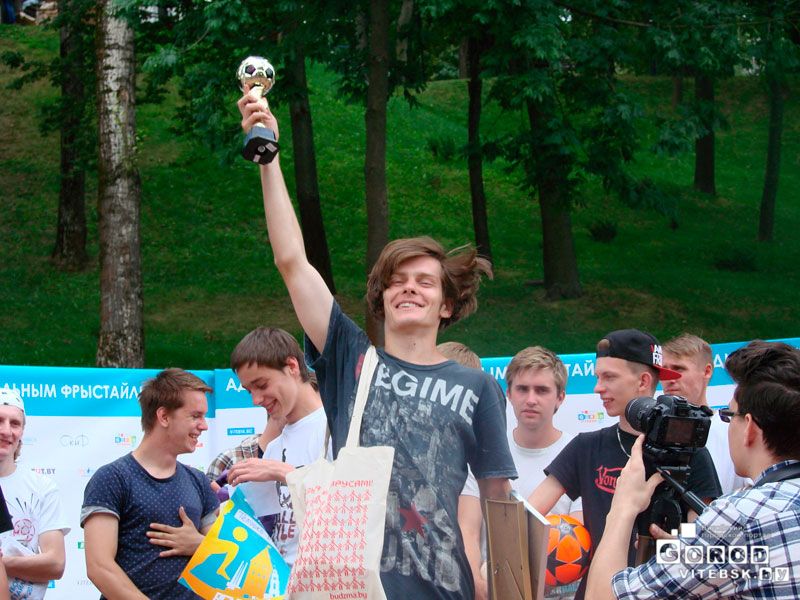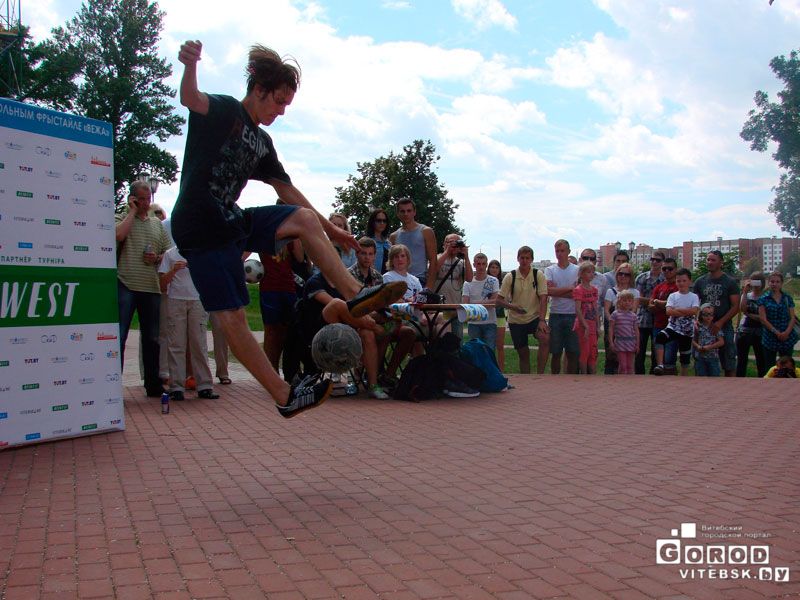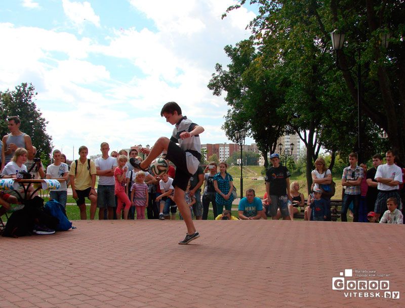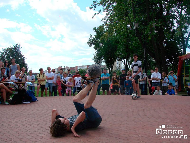 Чемпиону первого витебского турнира по футбольному фристайлу Владиславу Костюченко из Гомеля удалось достичь своей цели! 5 июля в парке Победителей состоялся зрелищный поединок мастеров этого вида спорта со всей страны.