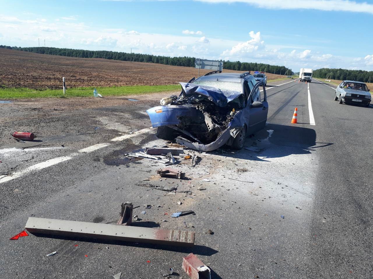 На трассе М15 недалеко от деревни Ромальдово Оршанского района 47-летний водитель на автомобиле «Форд-Фокус», двигаясь в попутном направлении за фурой с полуприцепом, не соблюдал дистанцию, из-за чего столкнулся с останавливающимся грузовым автомобилем.