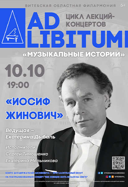 В четверг в витебской областной филармонии пройдет ЦИКЛ ЛЕКЦИЙ-КОНЦЕРТОВ «AD LIBITUM» «ИОСИФ ЖИНОВИЧ» 6+. А в концертном зале Витебск состоится спектакль “ПАМЯЦЬ СЭРЦА” 6+, который привез в наш город белорусский государствкенный академический заслуженный хореографический ансамбль “ХАРОШКІ”.