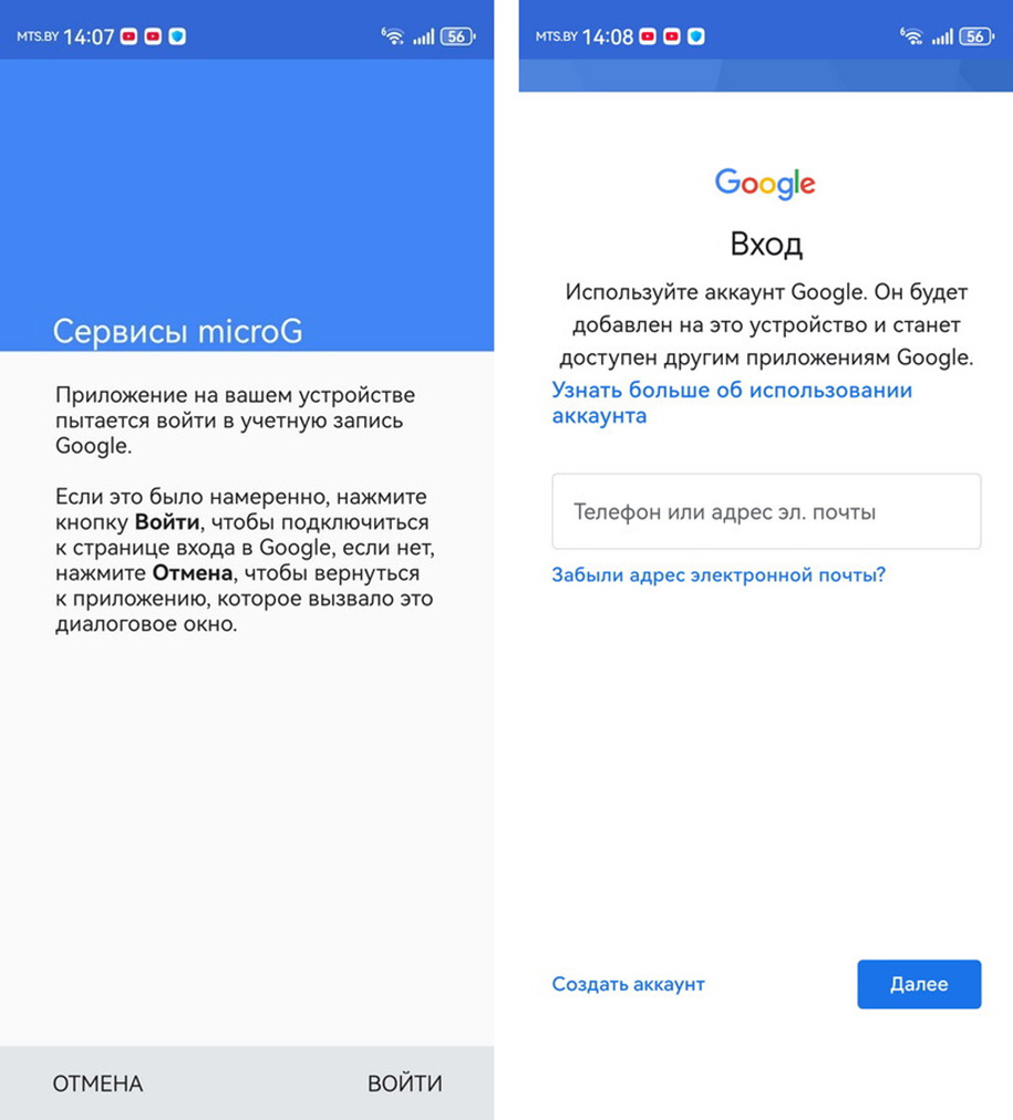 Утилита microG (микроДжи) загрузится и начнет работать в фоновом режиме, не отображая какую-либо свою иконку на рабочем столе. Далее просто устанавливайте любые приложения Google – microG (микроДжи) распознает их автоматически. Затем можете запустить любое из них и зайти в свою учетную запись Google.