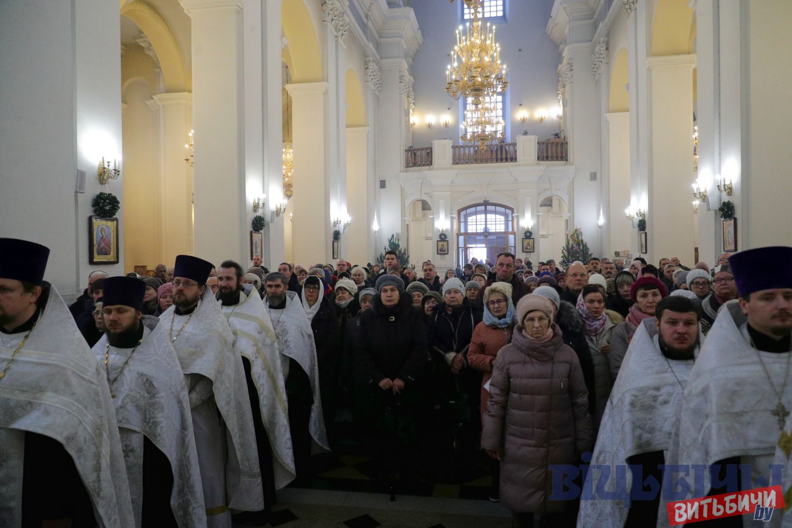 В Свято-Успенском кафедральном соборе, главном храме областного центра и Витебской епархии, 7 января архиепископ Витебский и Оршанский Димитрий совершил Божественную литургию, а также в полдень возглавил торжественный соборный Рождественский молебен, который провел в сослужении городского духовенства.